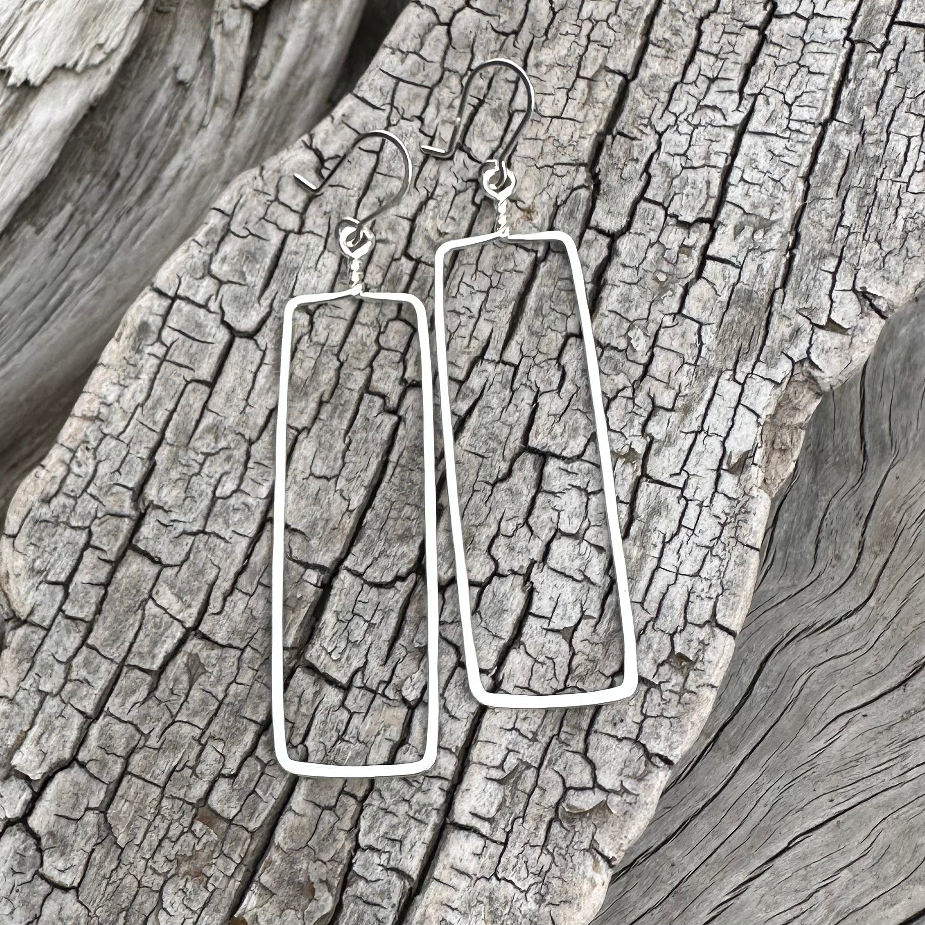 This simple yet modern design are made of sterling silver and are hand-hammered to create a soft texture. These little beauties are lightweight, comfortable, and great for wearing everyday. The ear-hooks are my classic short design, made from 20 gauge sterling silver. Each earring measures approximately 3” in length, including ear-hook.